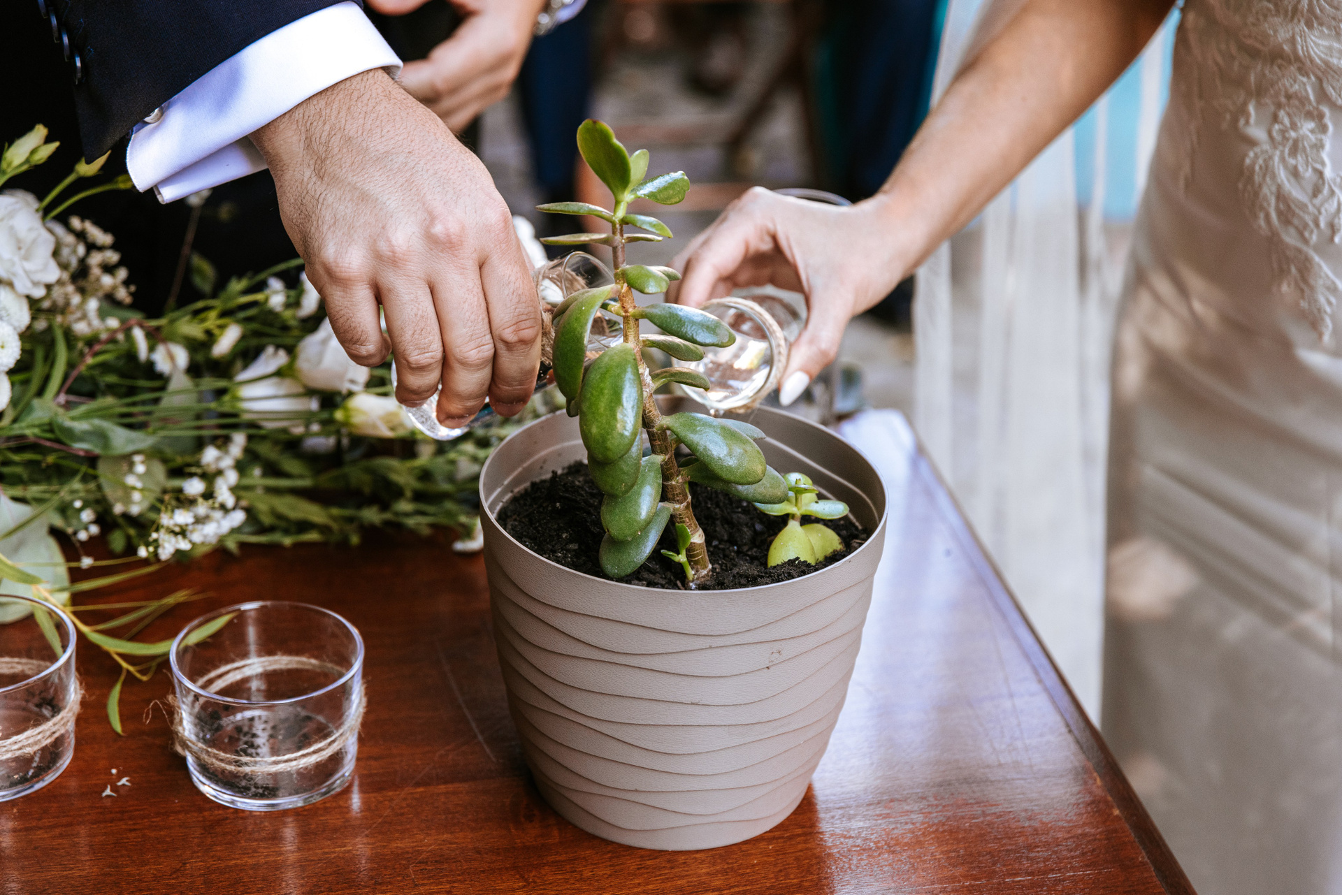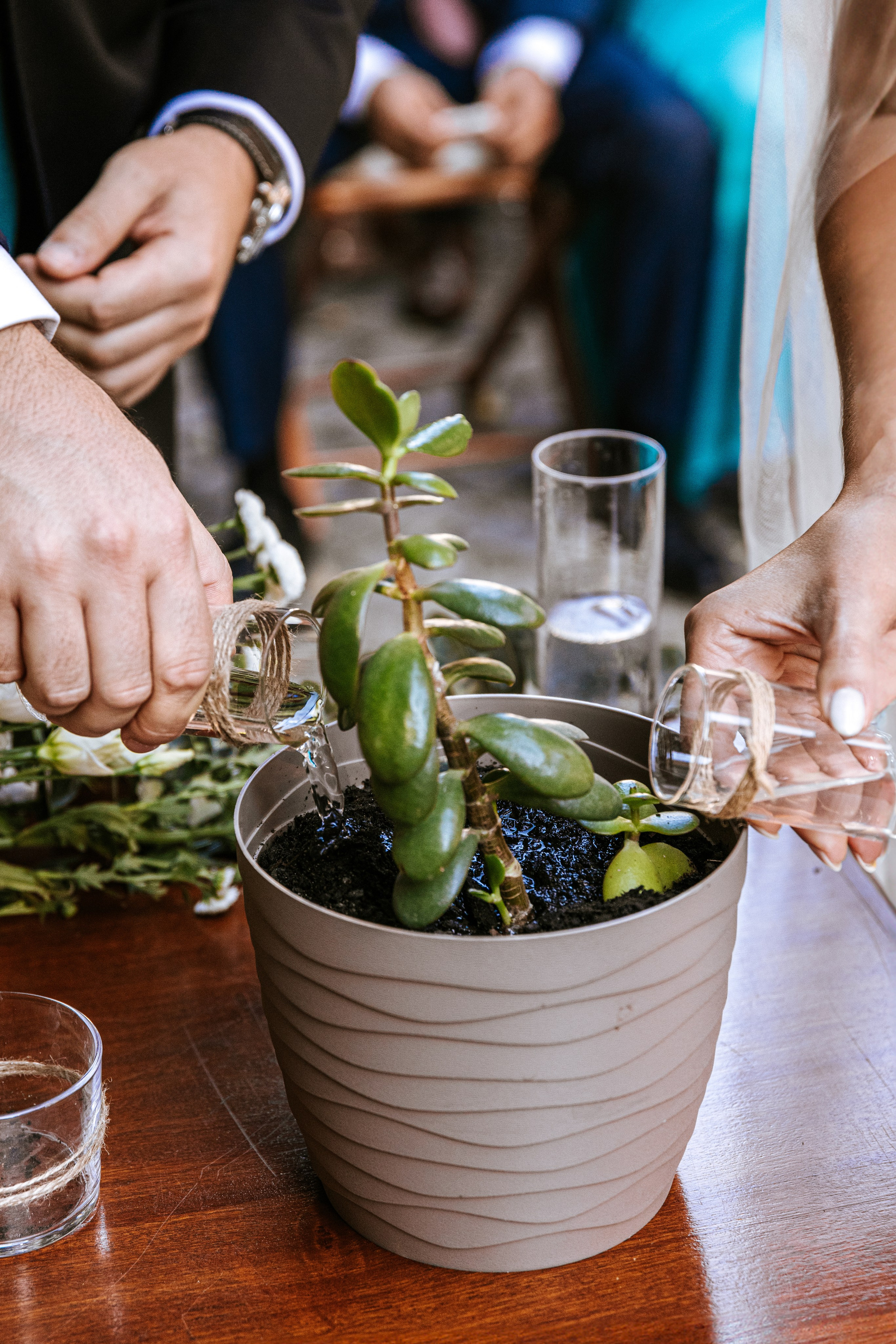 One of the most symbolic moments was their Jade plant unity ceremony — a living representation of their commitment and shared future.