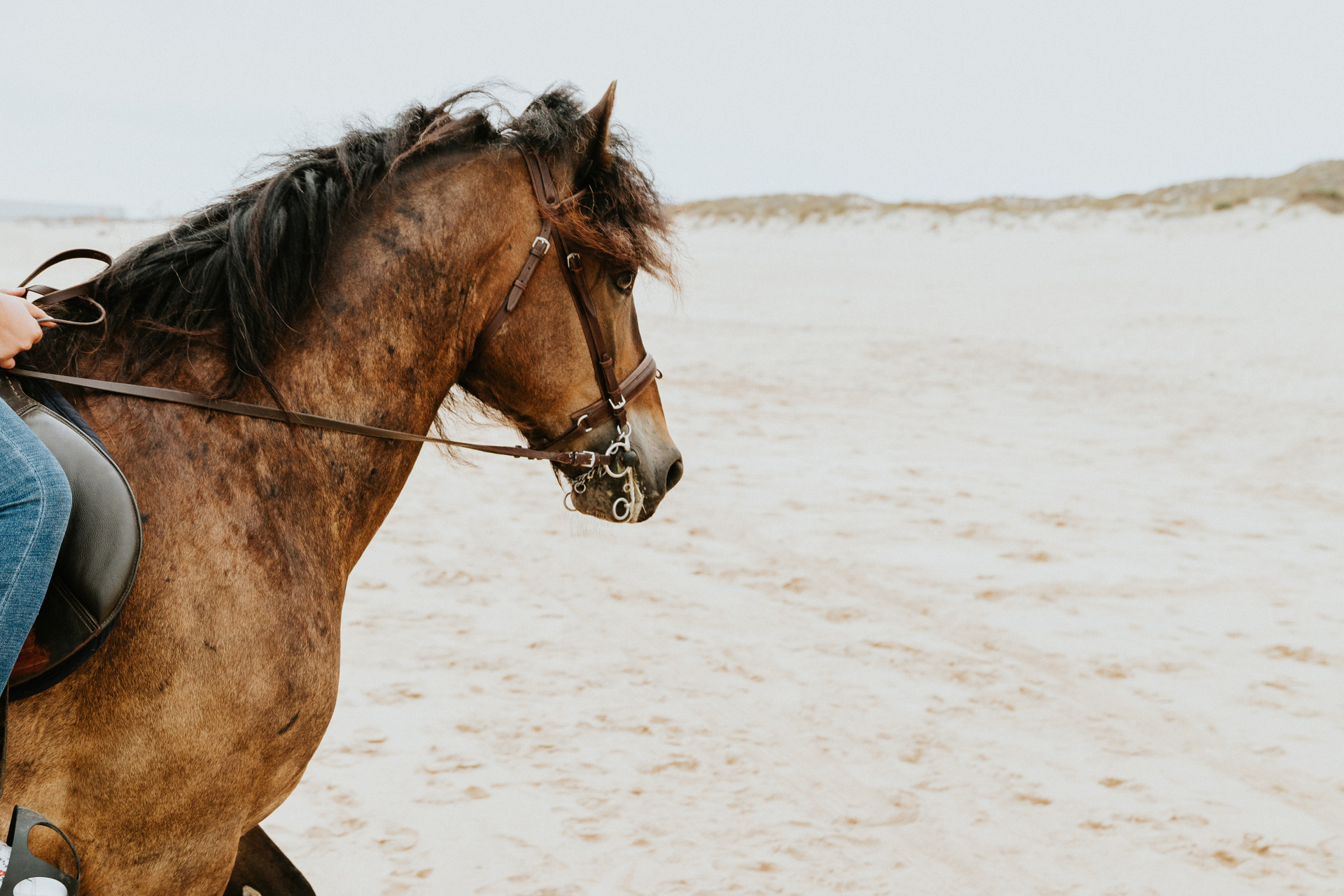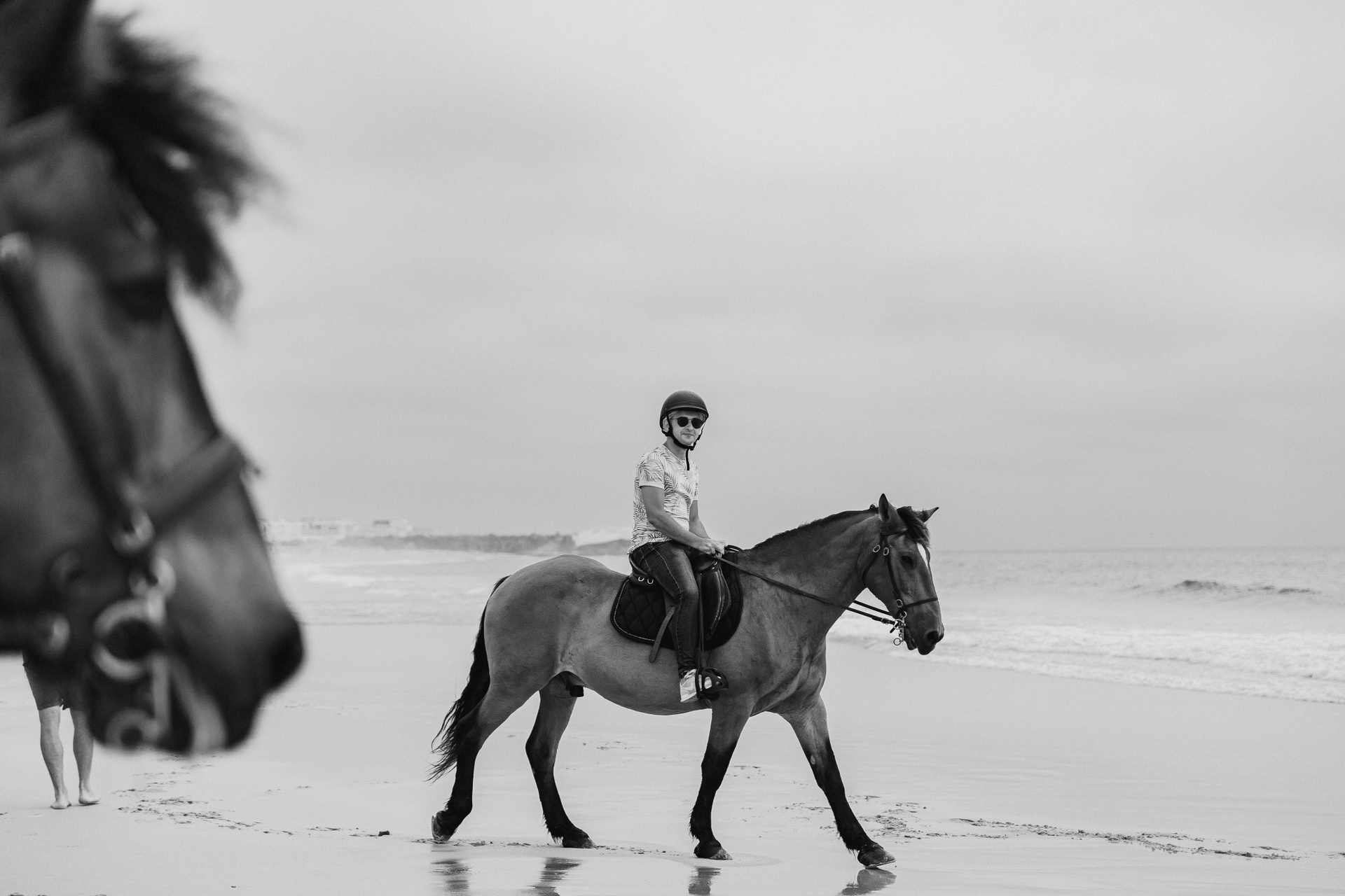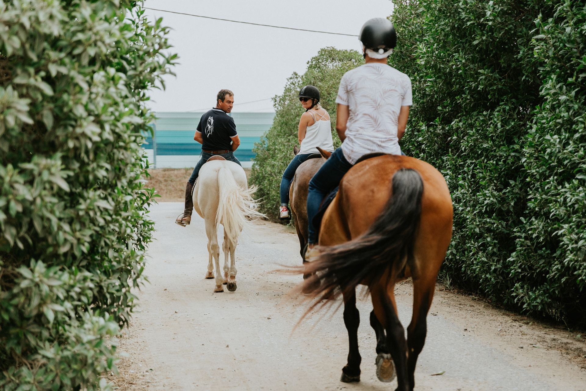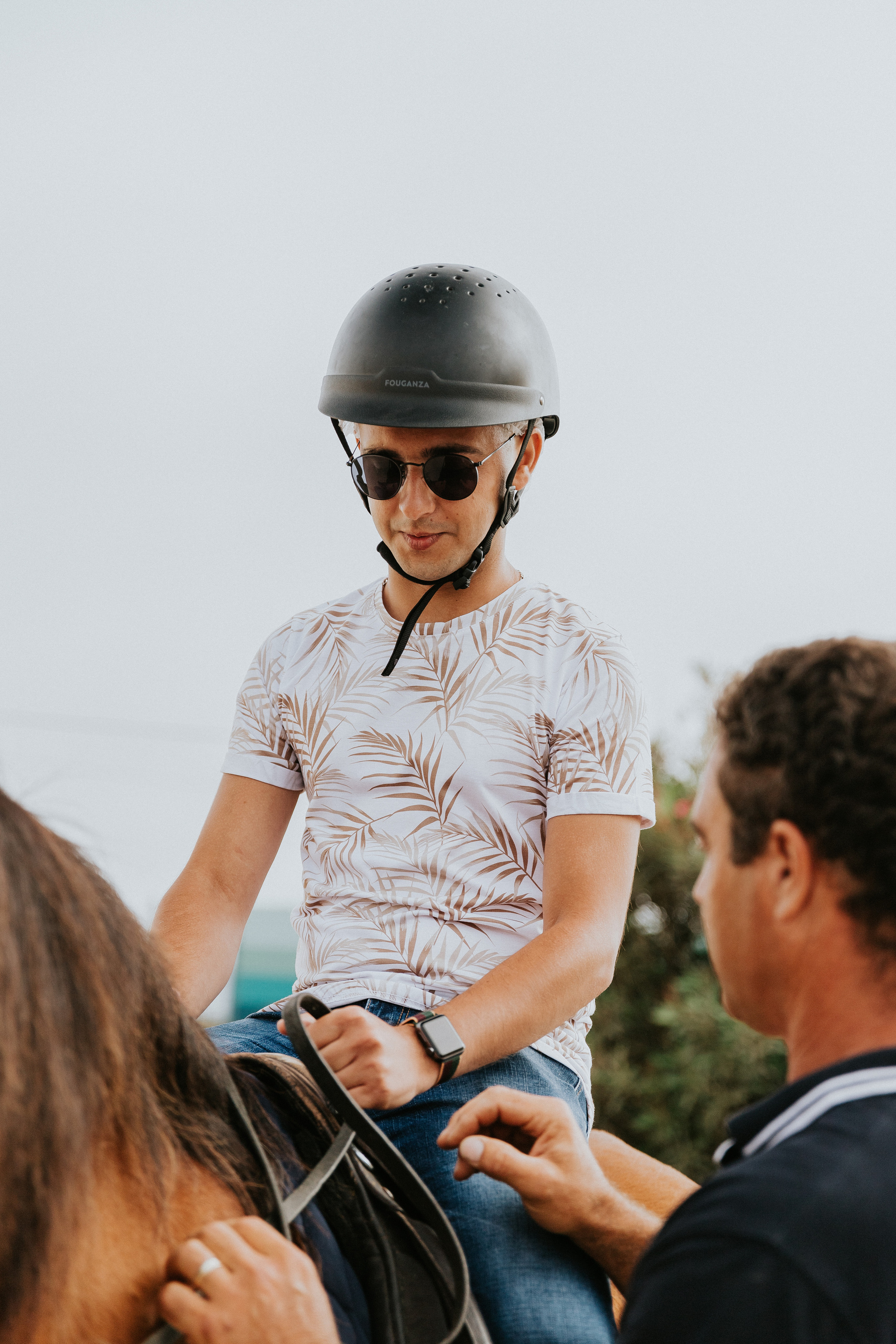 Depois de umas instruções, eles conseguiram controlar os cavalos por conta própria e concluíram essa caminhada dirigindo o tempo todo sozinhos, com apenas algumas dicas da parte do instrutor Ricardo. O dia estava ensolarado e o mar calmo, o que permitiu que eles se aproximassem da água e entrassem no mar.