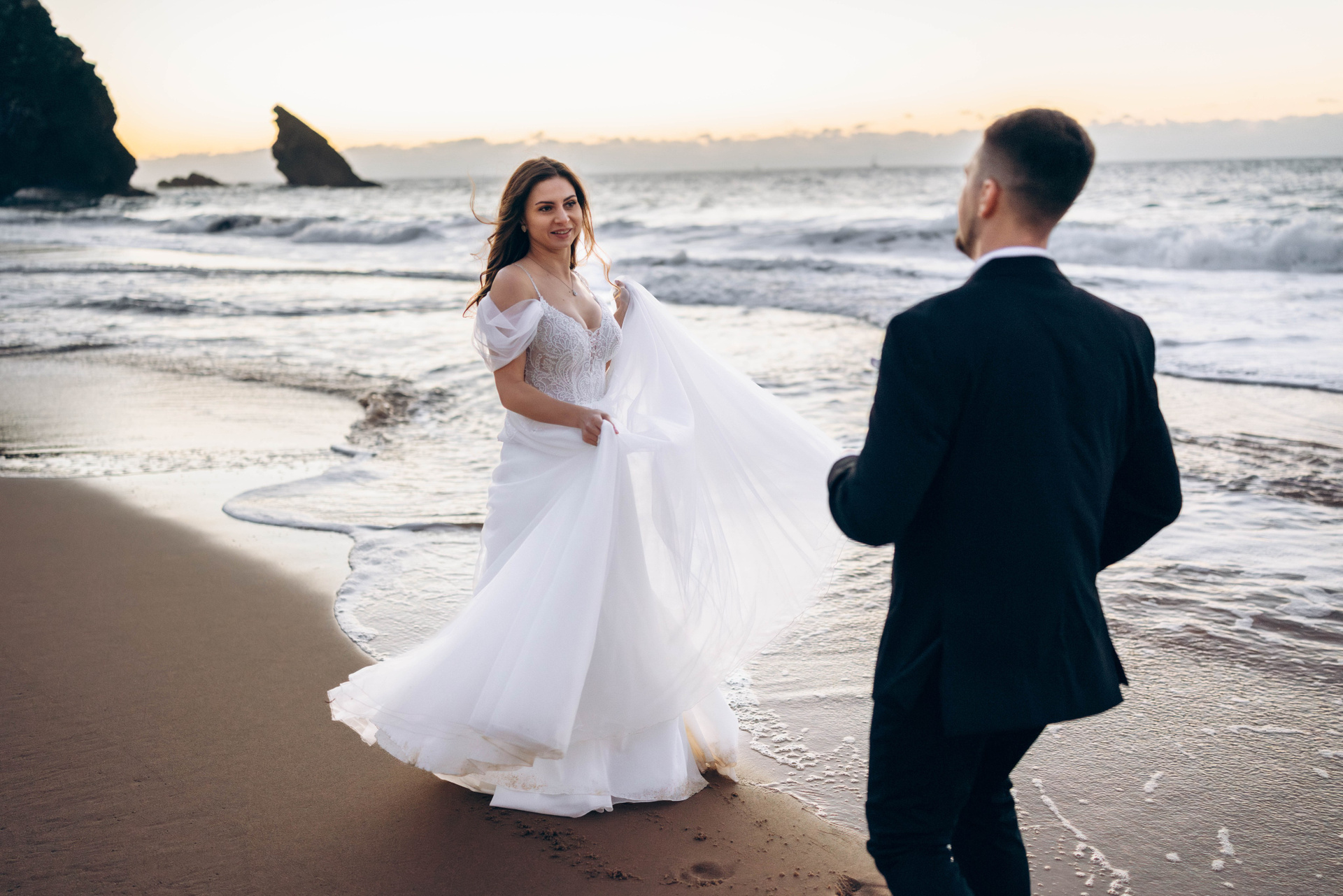 Ao final do dia, a Praia da Adraga tornou-se o palco da liberdade e da emoção. Entre falésias douradas, vento atlântico e um pôr do sol cinematográfico, criámos imagens que refletem intensidade, verdade e elegância.