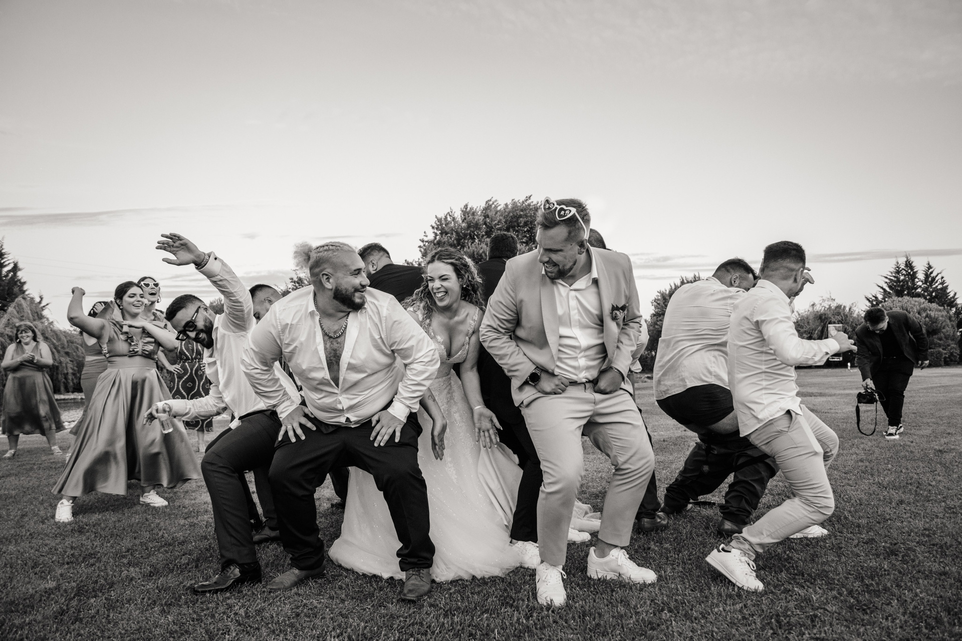Por norma ficamos até acharmos que temos material necessário para obter tudo que necessitamos. O tempo que ficamos num casamento não é uma indicação de quanto tempo o casamento vai demorar, é apenas o tempo que vamos realmente estar lá. Podem continuar a divertir-se e a desfrutar do vosso tempo com os vossos amigos e familiares depois de partirmos.